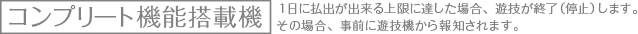 コンプリート機能搭載機 1日に払出が出来る上限に達した場合、遊技を終了(停止)します。その場合、事前に遊技機から報知されます。